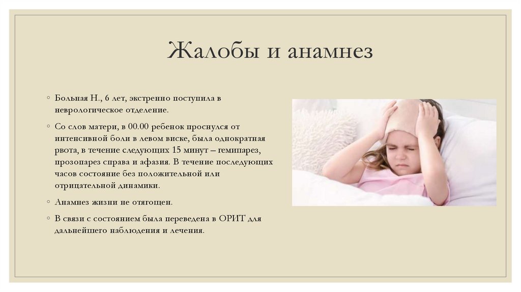 Жалобы и анамнез◦ Больная Н., 6 лет, экстренно поступила в