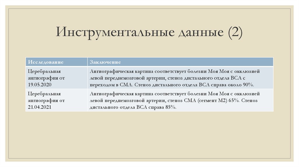 Ангиографическая картина соответствует болезни Моя Моя с окклюзией