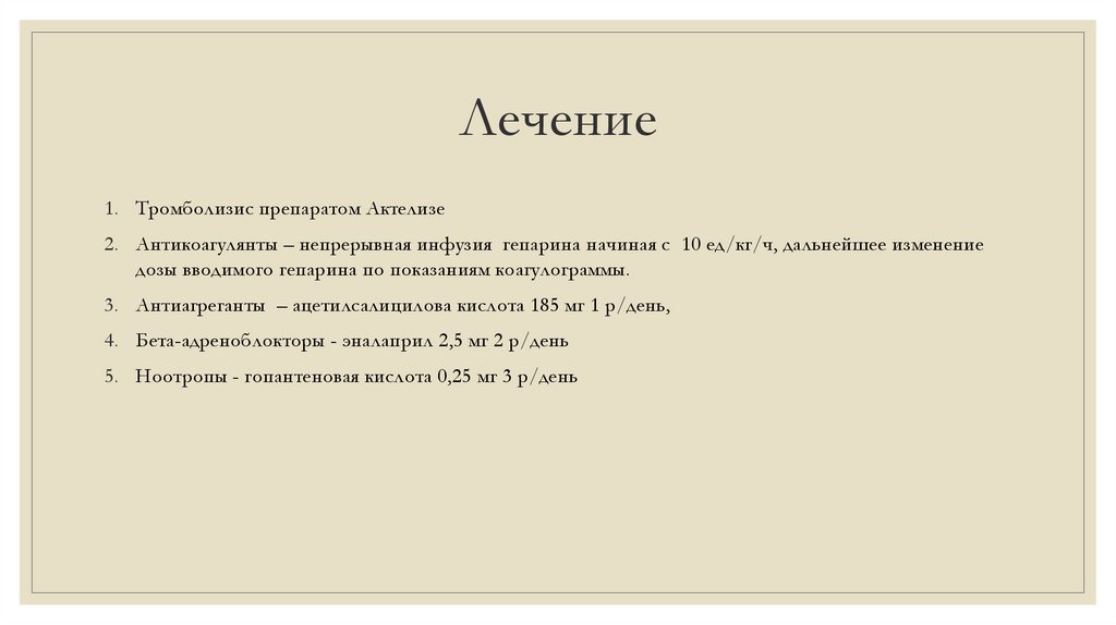 4. Медикаментозная терапия ацетилсалициловой кислотой, эналаприлом, гопантеновой кислотой в