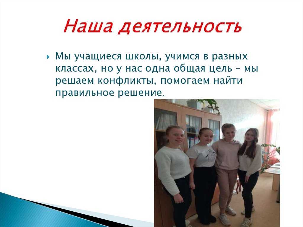 Мы учащиеся школы, учимся в разныхклассах, но у нас одна общая цель – мы