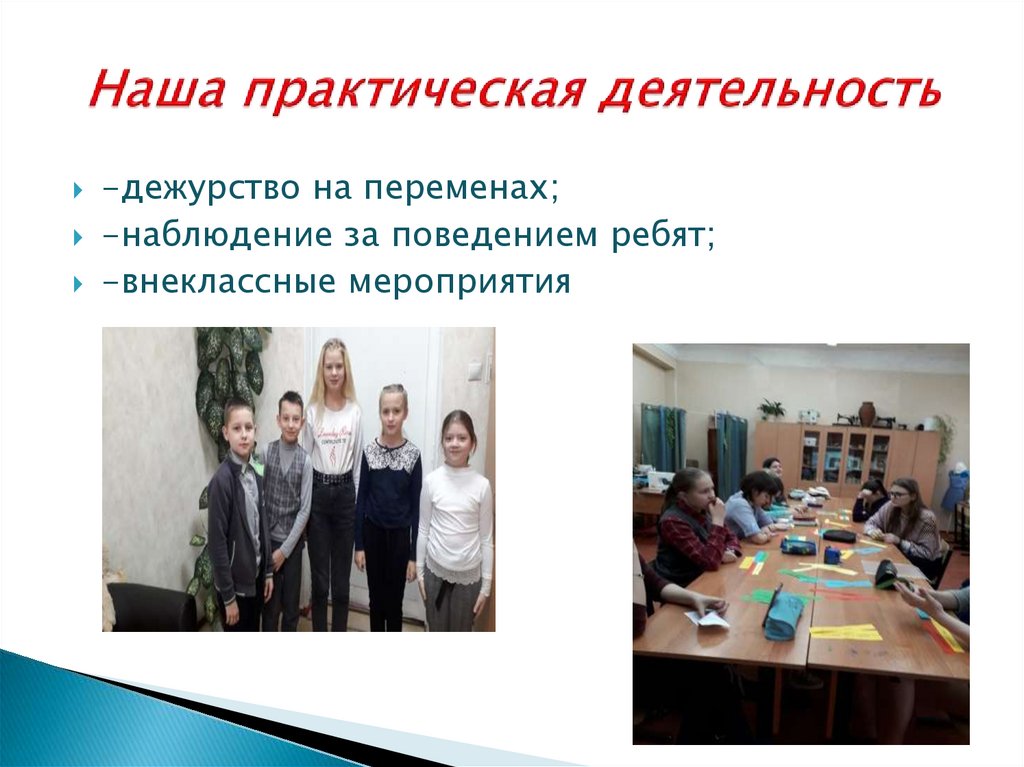 -дежурство на переменах;-наблюдение за поведением ребят;