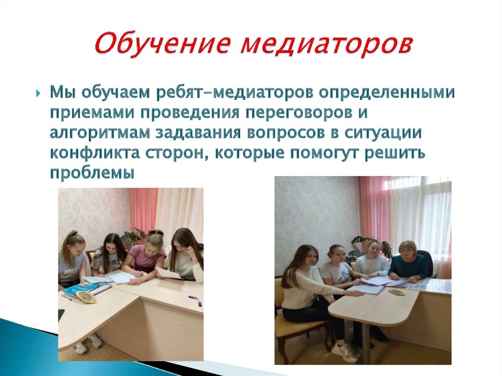 Мы обучаем ребят-медиаторов определеннымиприемами проведения переговоров и