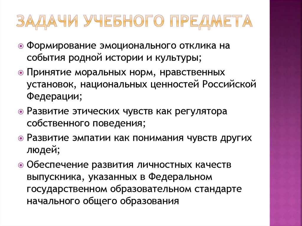 Формирование эмоционального отклика насобытия родной истории и культуры;