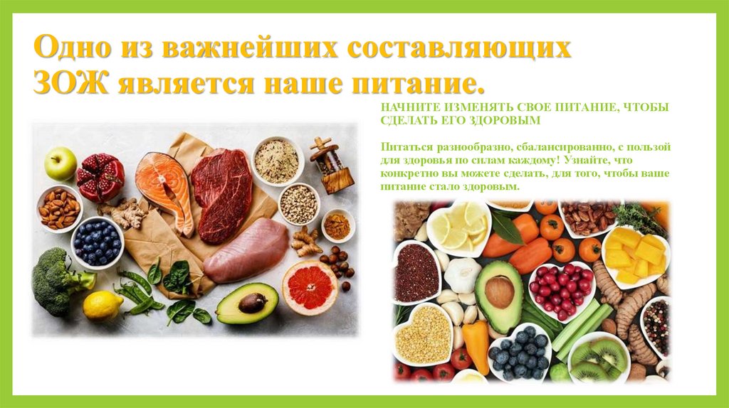 Одно из важнейших составляющихЗОЖ является наше питание.