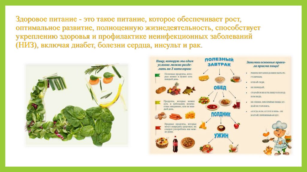 Здоровое питание - это такое питание, которое обеспечивает рост,оптимальное развитие, полноценную жизнедеятельность, способствует