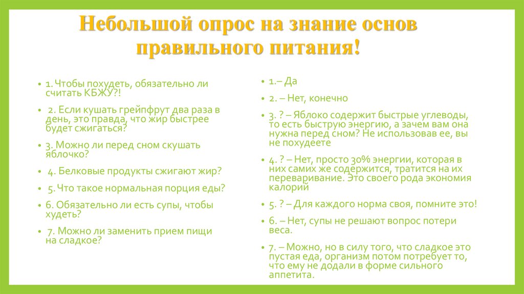 Небольшой опрос на знание основправильного питания!
