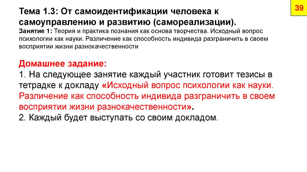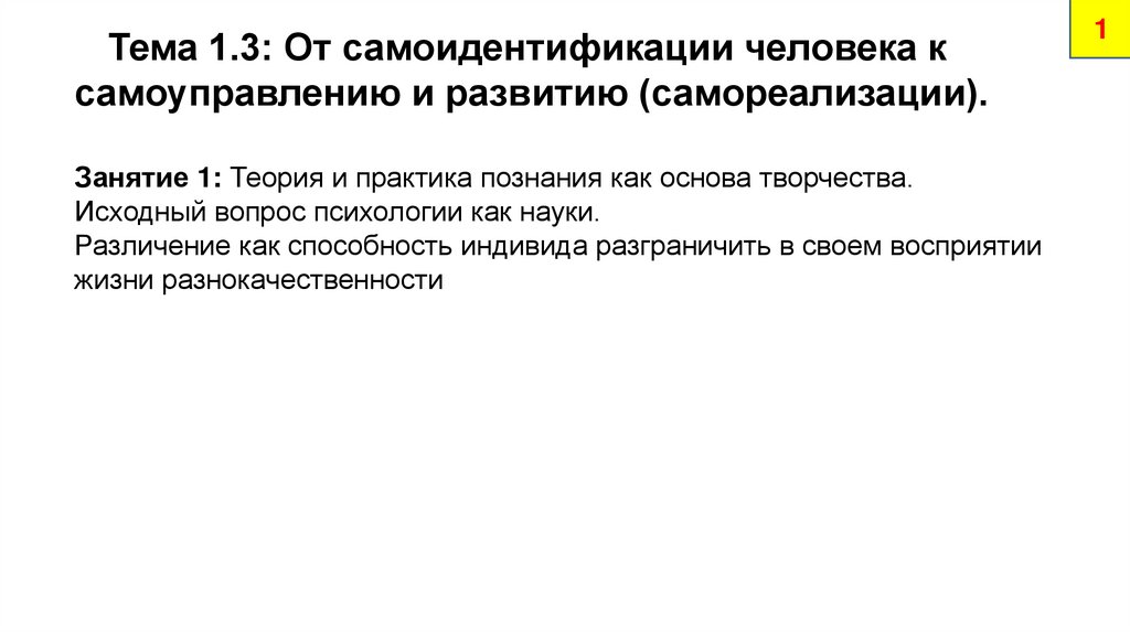 Тема 1.3: От самоидентификации человека ксамоуправлению и развитию (самореализации).