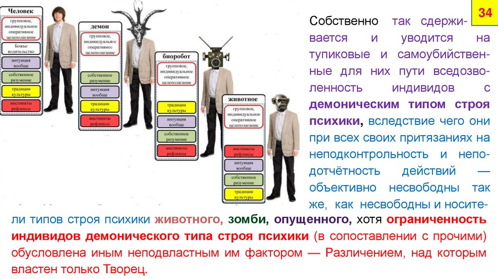 же, как несвободны и носители типов строя психики животного, зомби, опущенного, хотя ограниченность
