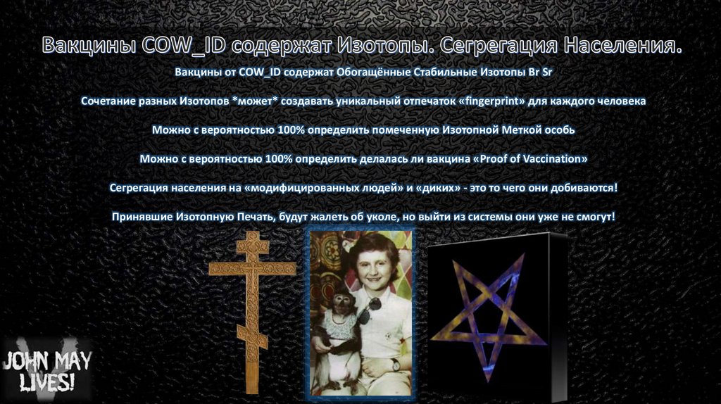 Вакцины от СOW_ID содержат Обогащённые Стабильные Изотопы Br SrСочетание разных Изотопов *может* создавать уникальный отпечаток «fingerprint» для каждого человека