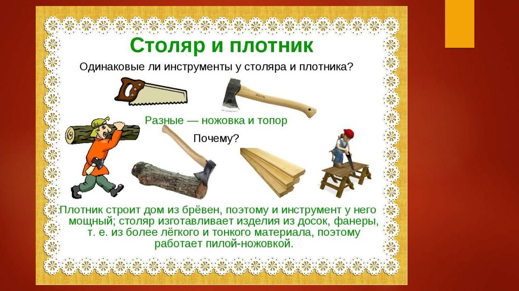 Рабочие профессии - плотник, столяр