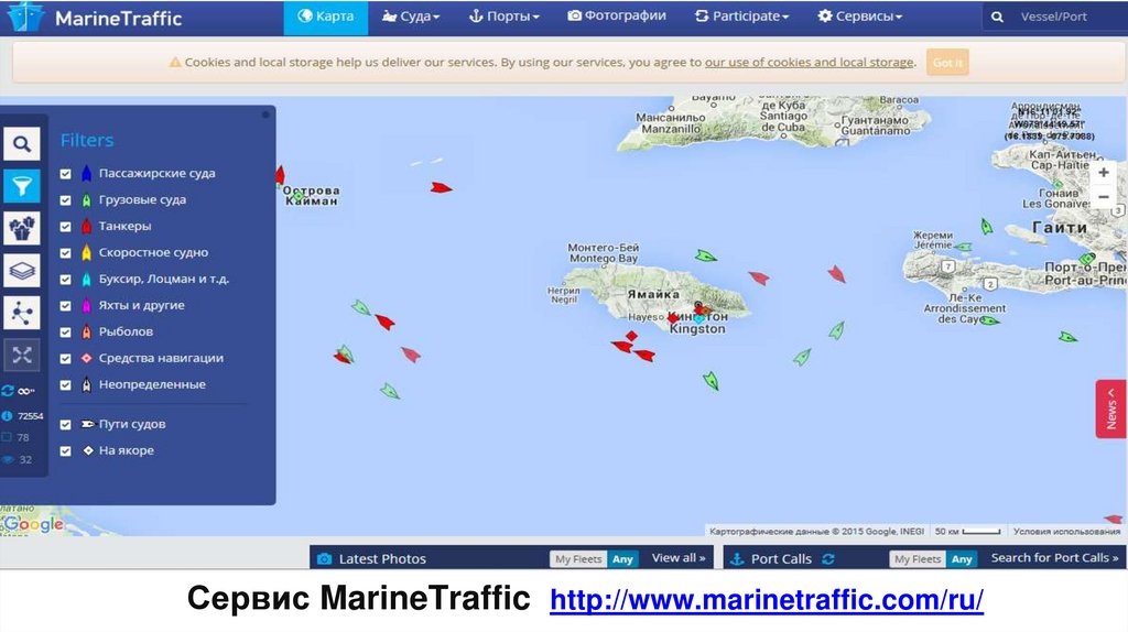 Морская навигацияСервис MarineTraffic http://www.marinetraffic.com/ru/