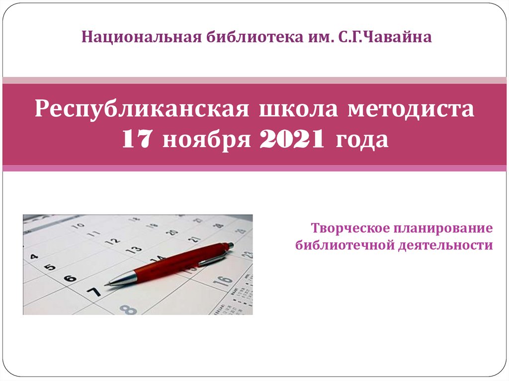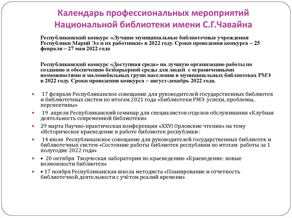 Календарь профессиональных мероприятийНациональной библиотеки имени С.Г.Чавайна
