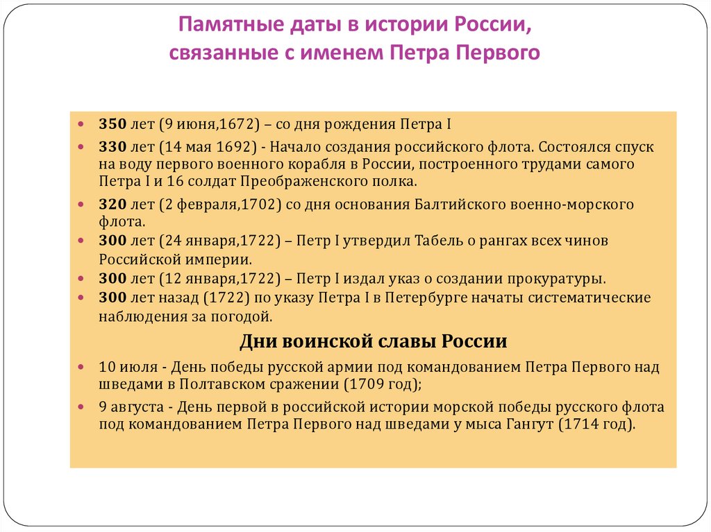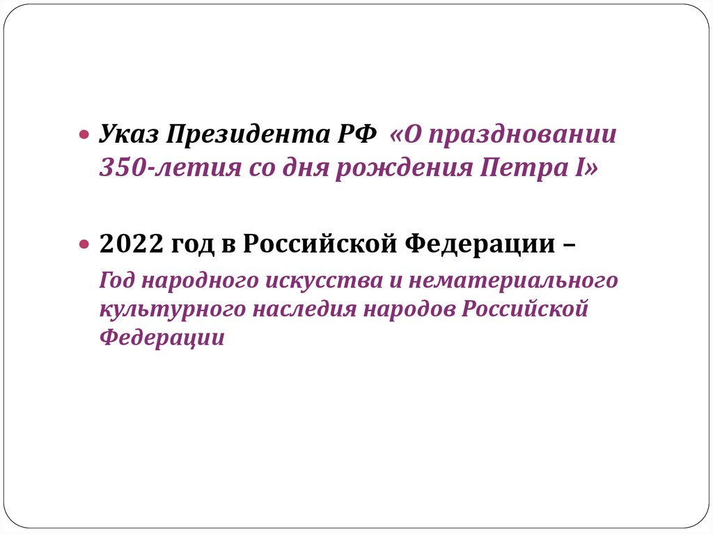 Указ Президента РФ «О праздновании350-летия со дня рождения Петра I»