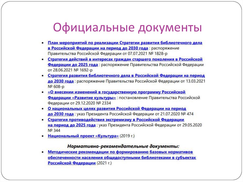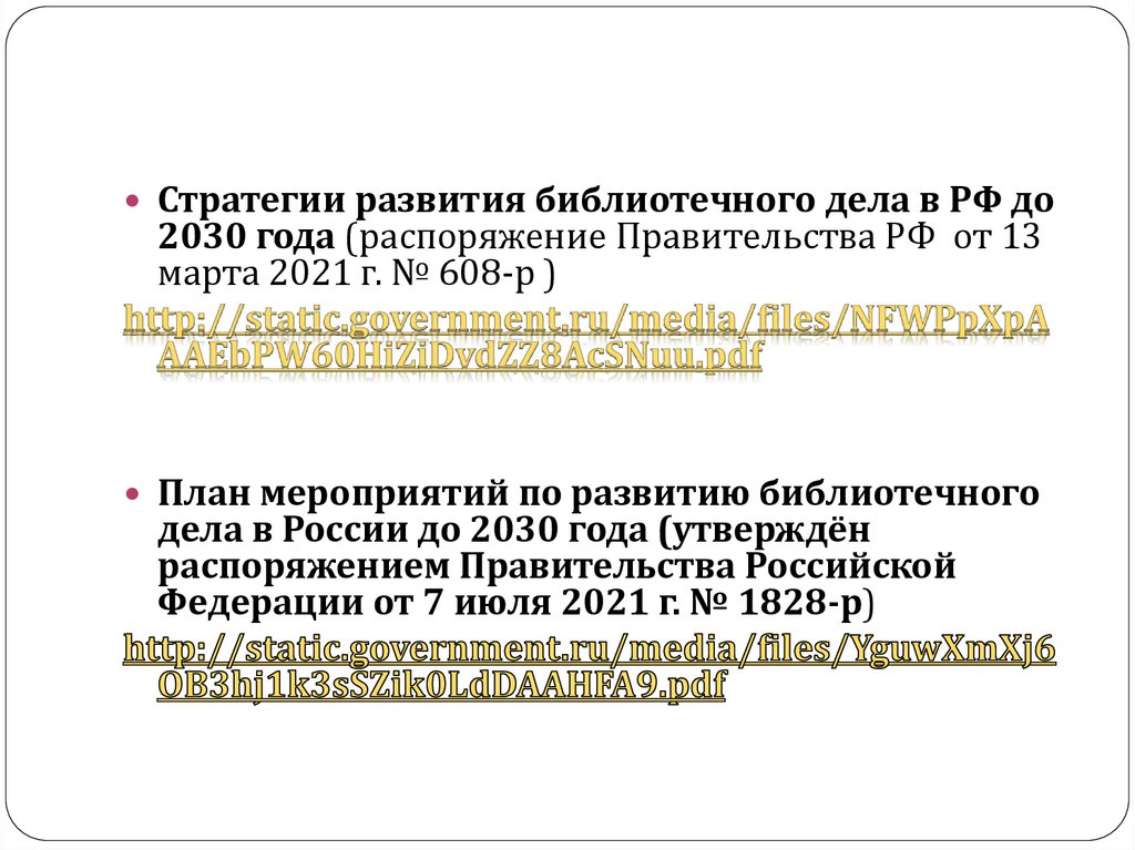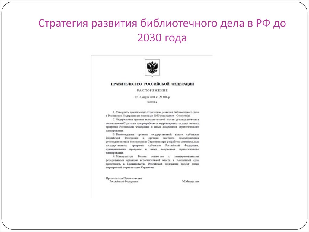 Стратегии развития библиотечного дела в РФ до2030 года (распоряжение Правительства РФ от 13