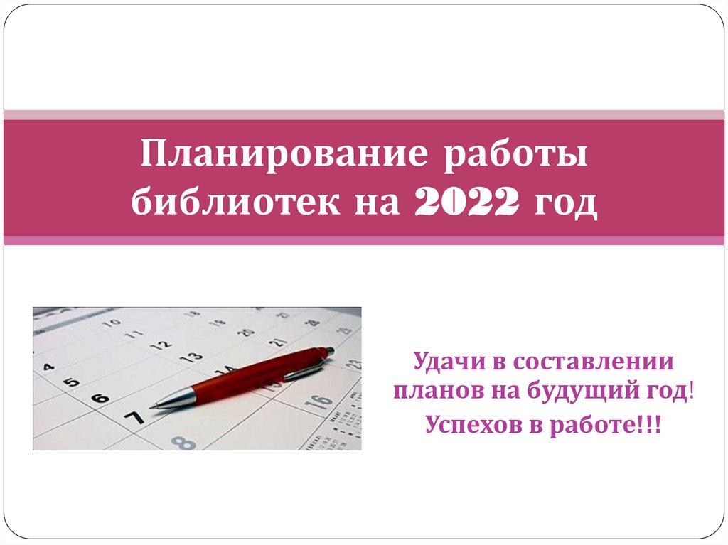 Планирование работыбиблиотек на 2022 год