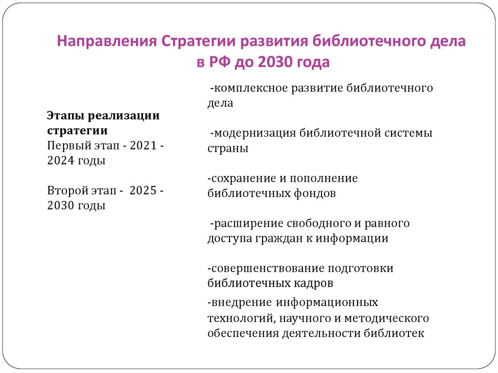 Направления Стратегии развития библиотечного делав РФ до 2030 года