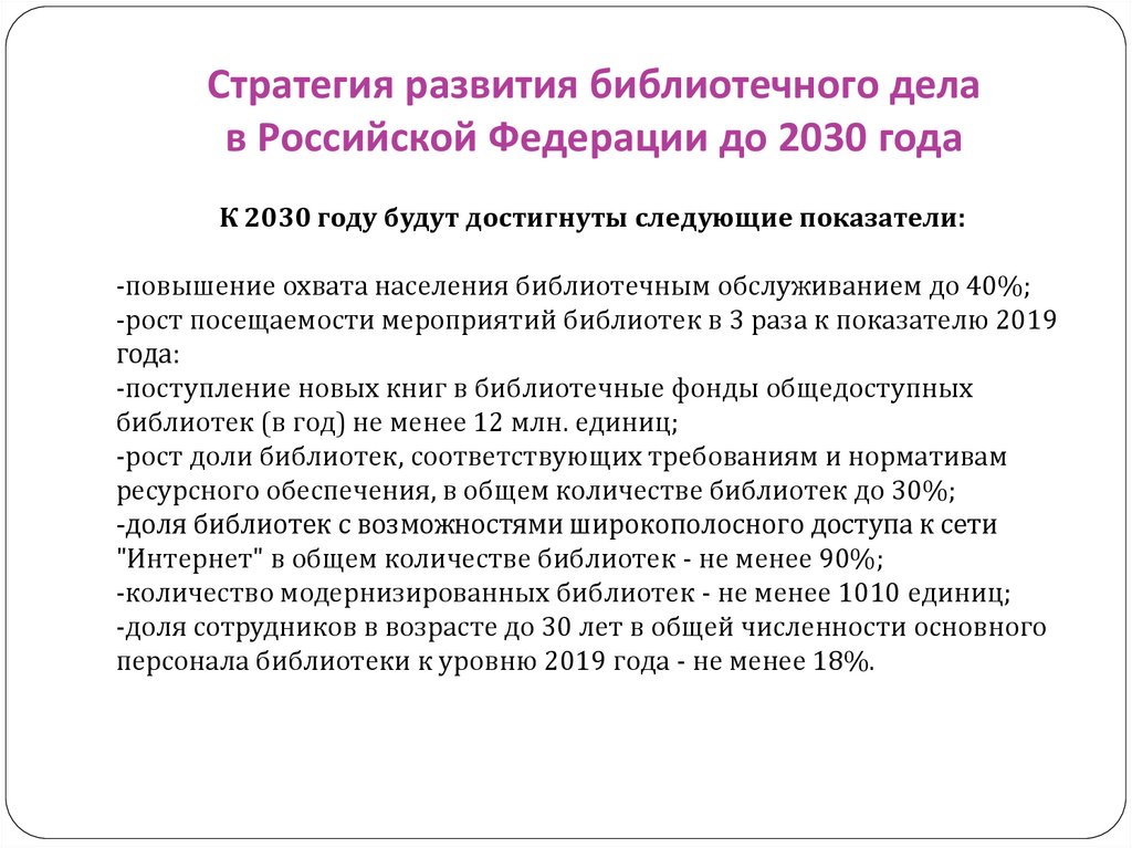 Стратегия развития библиотечного дела в РФ до2030 года
