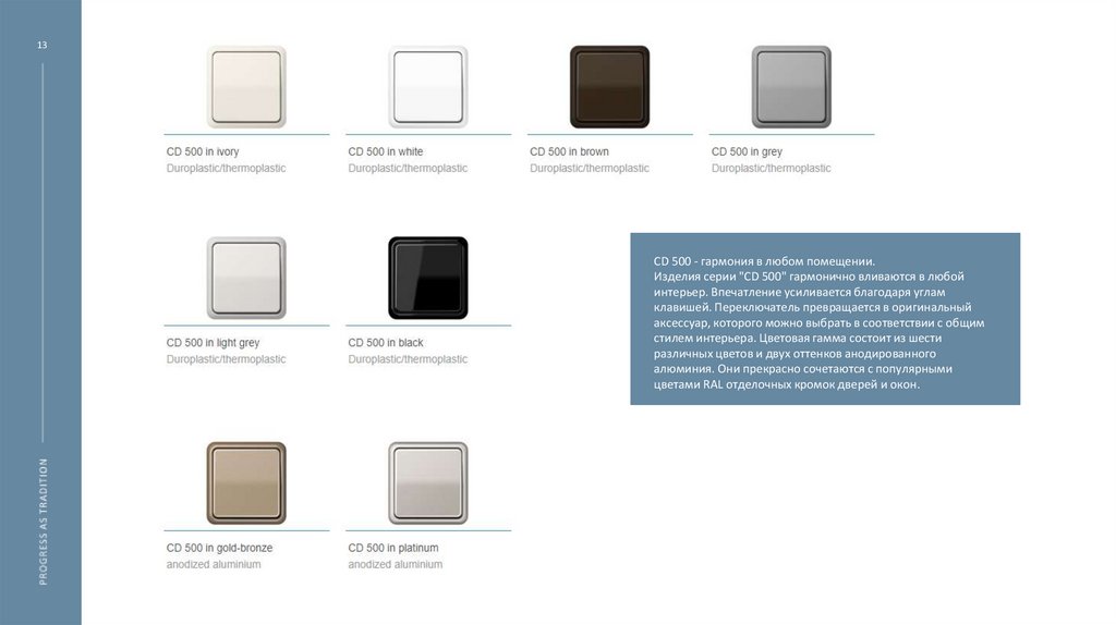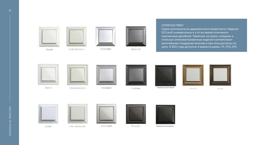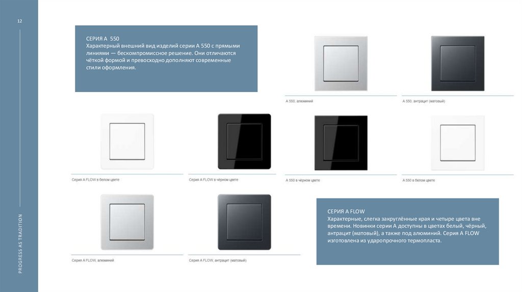 Серия изготовлена из ударопрочного термопласта. Изделия