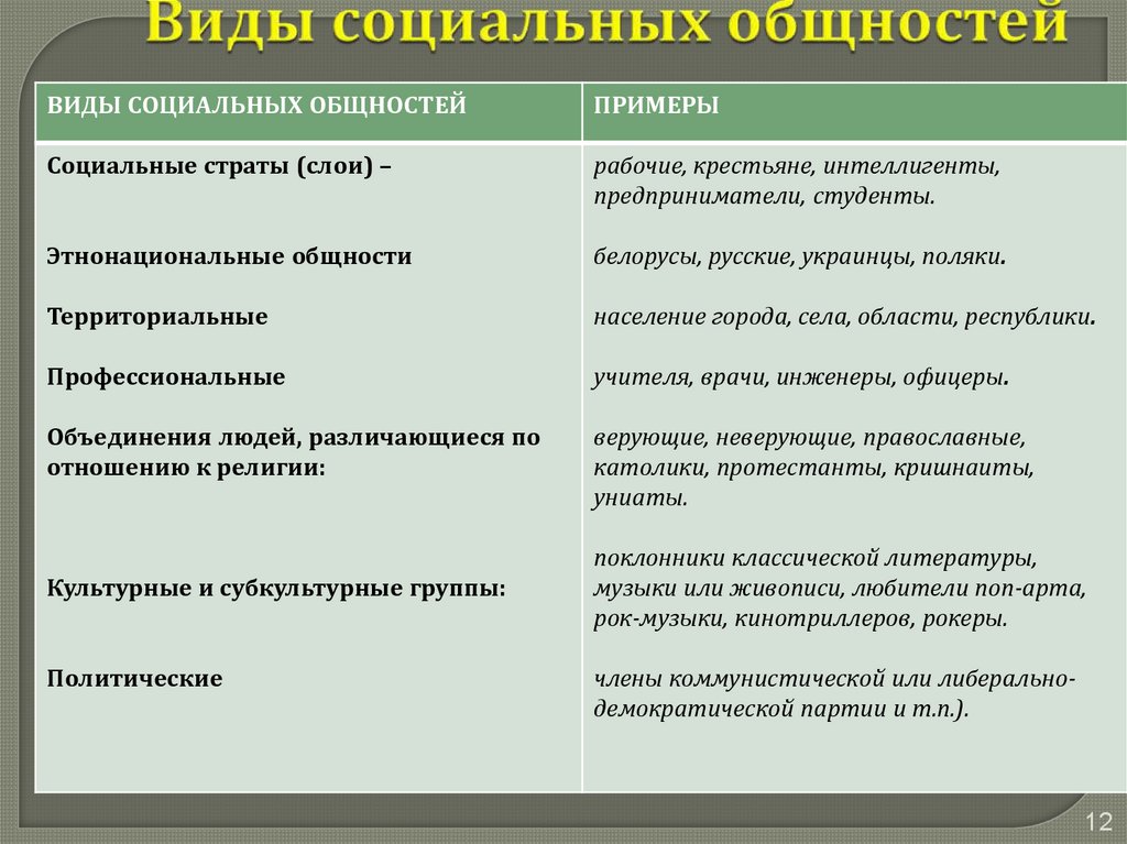 •Социальные общности (рабочие, интеллигенция, белорусы, горожане, верующие