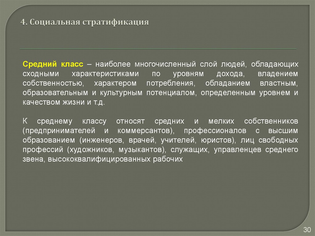 Средний класс – наиболее многочисленный слой людей, обладающихсходными