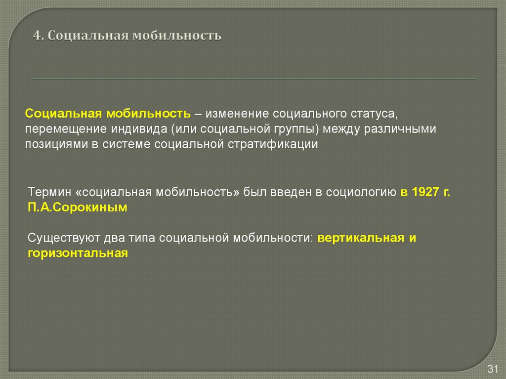 Термин «социальная мобильность» был введен в социологию в 1927 г.