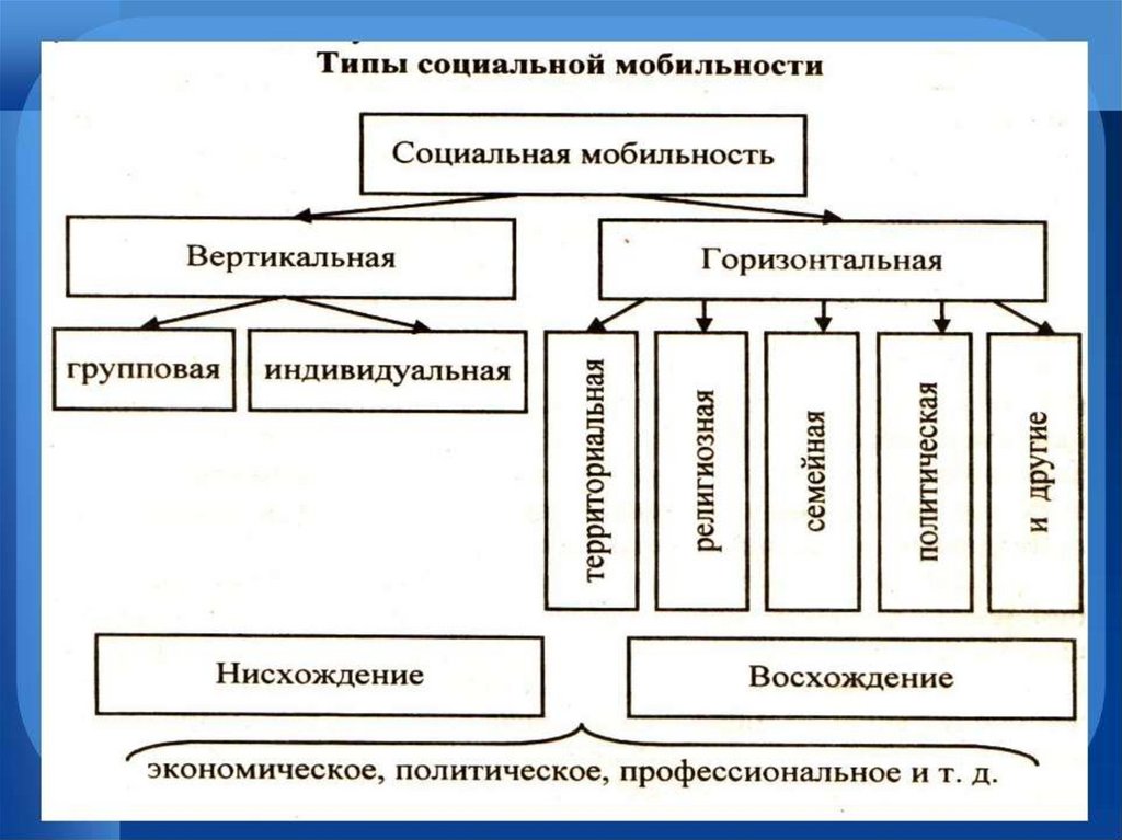 Социальная мобильность – изменение социального статуса,перемещение индивида (или социальной группы) между различными