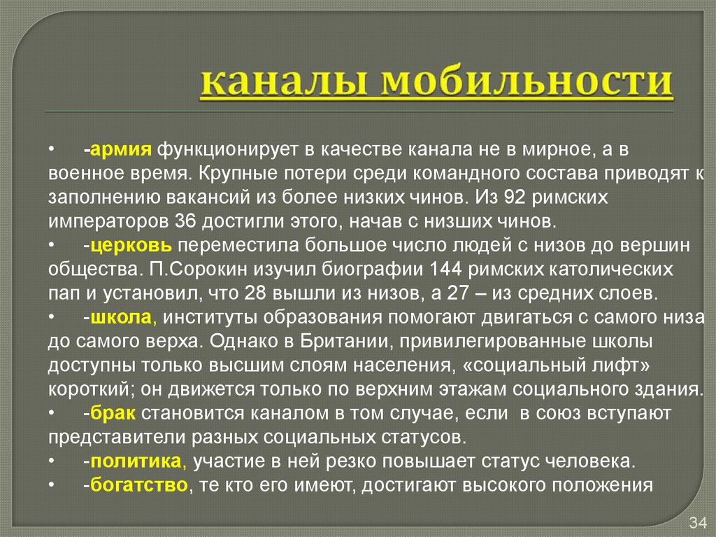 • -армия функционирует в качестве канала не в мирное, а ввоенное время. Крупные потери среди командного состава приводят к