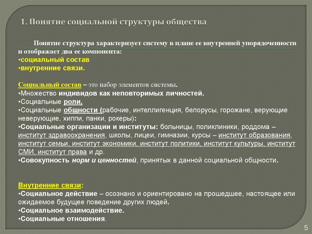 Понятие структура характеризует систему в плане ее внутренней упорядоченностии отображает два ее компонента: