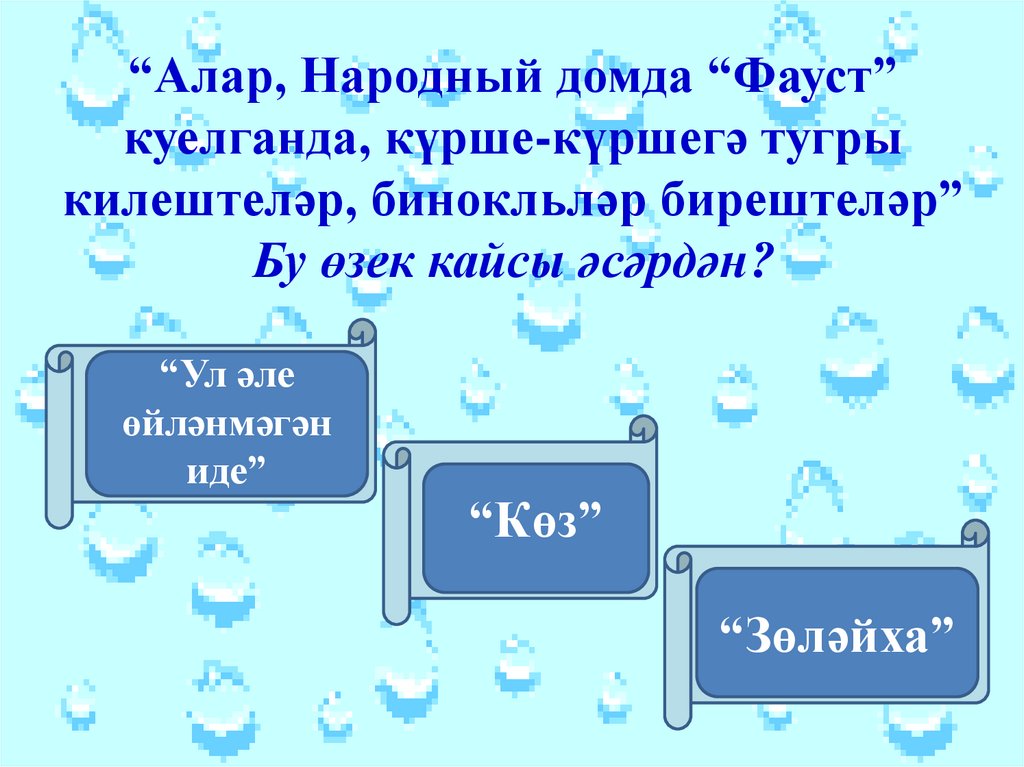 “Алар, Народный домда “Фауст”куелганда, күрше-күршегә тугры