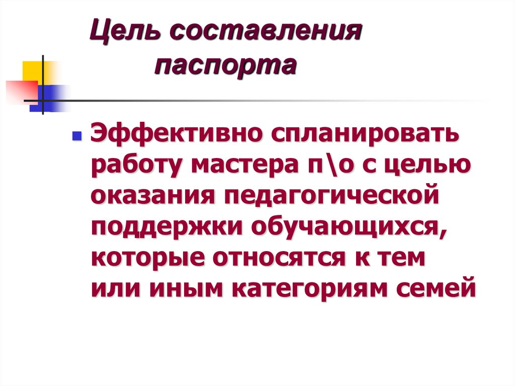 Цель составленияпаспорта