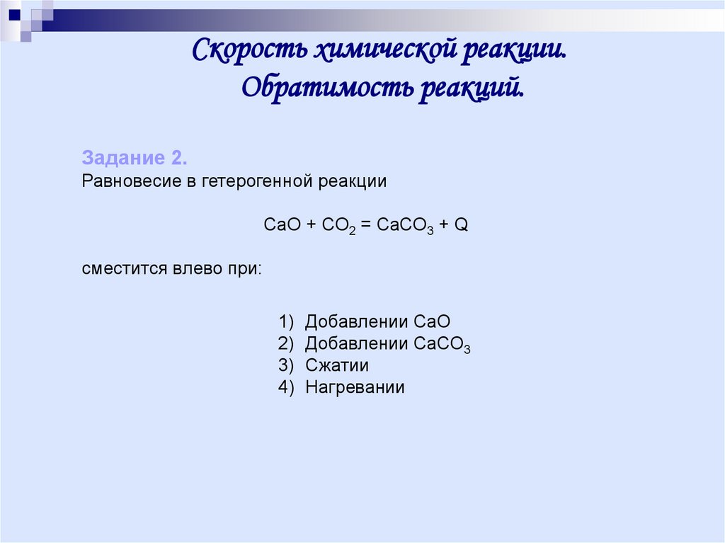 Скорость химической реакции.Обратимость реакций.