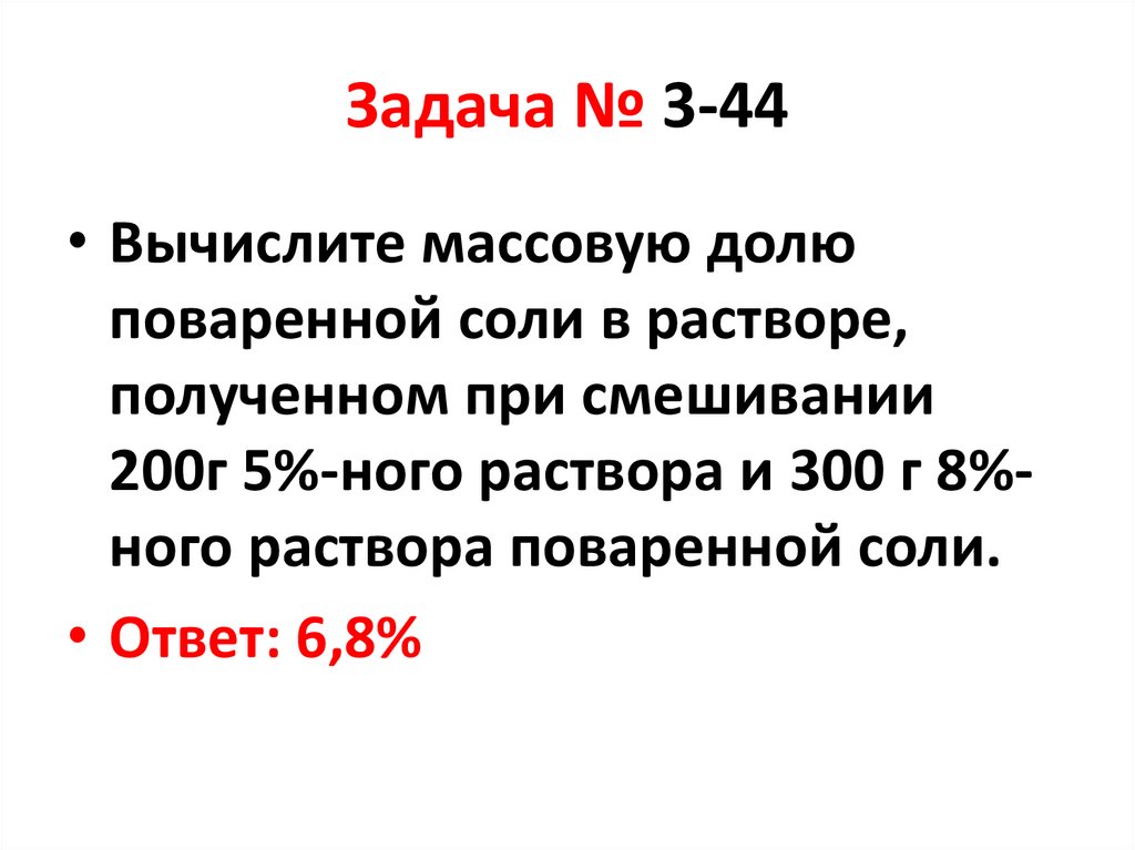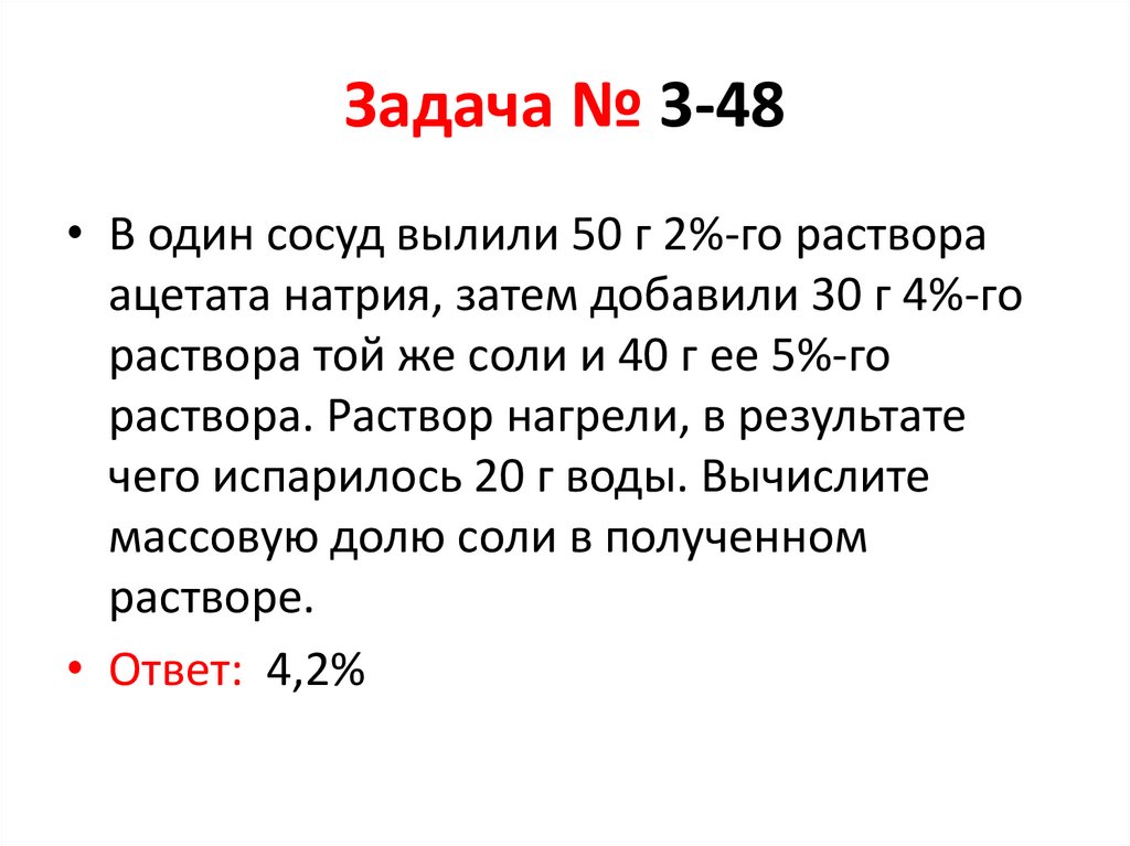 Задача № 3-48• В один сосуд вылили 50 г 2%-го раствора