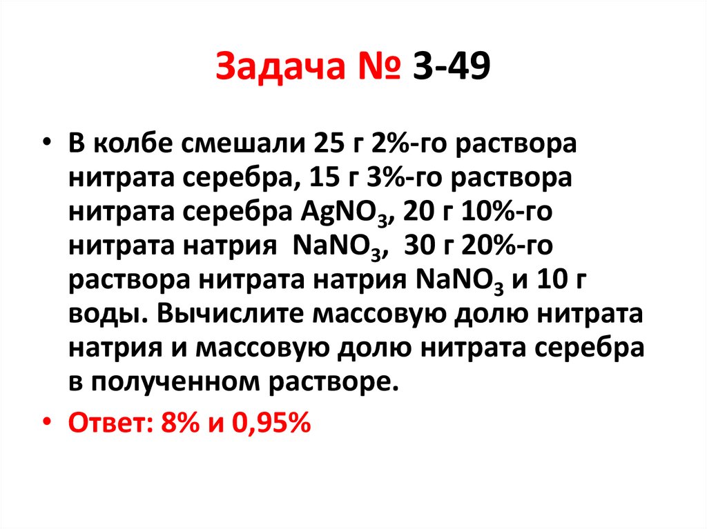 Задача № 3-49• В колбе смешали 25 г 2%-го раствора