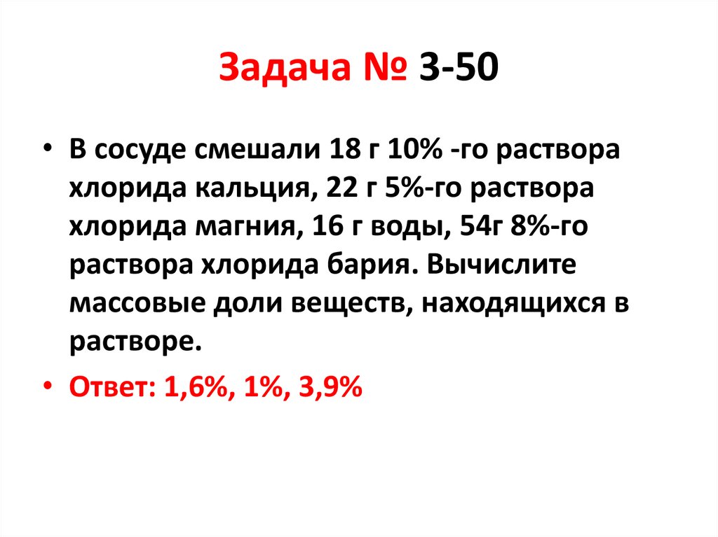 Задача № 3-50• В сосуде смешали 18 г 10% -го раствора