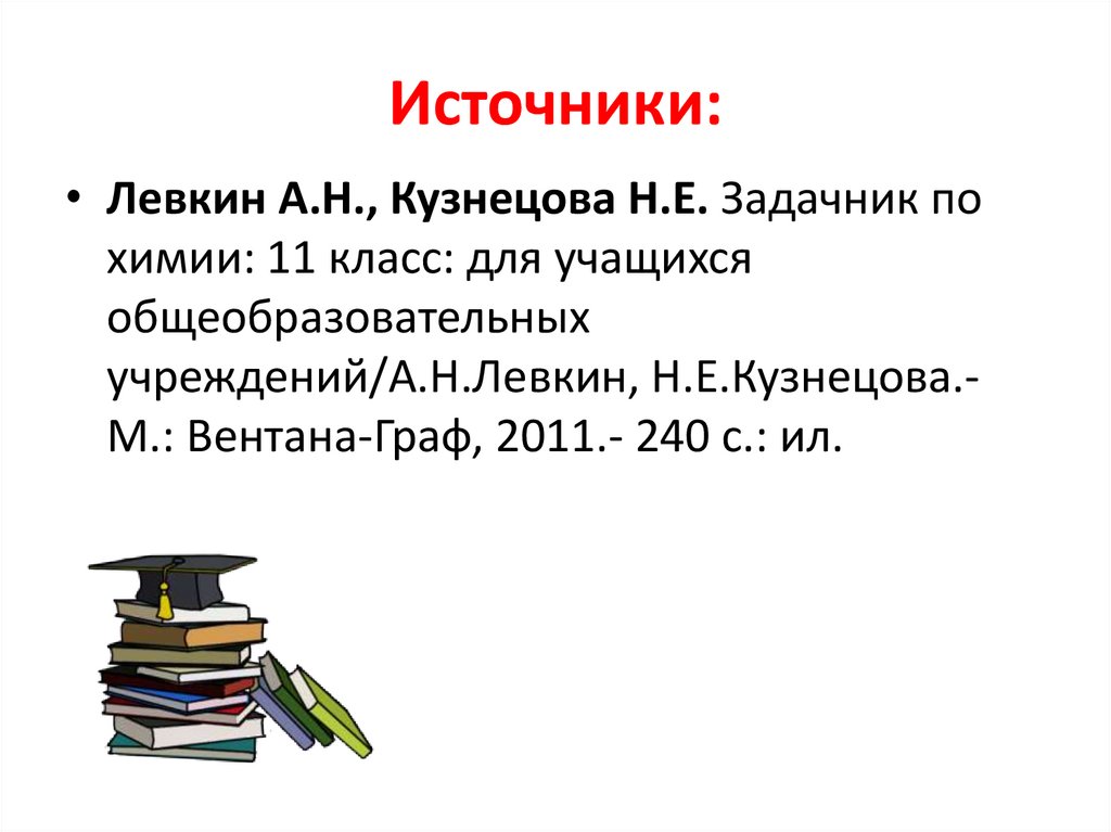 Источники:• Левкин А.Н., Кузнецова Н.Е. Задачник по