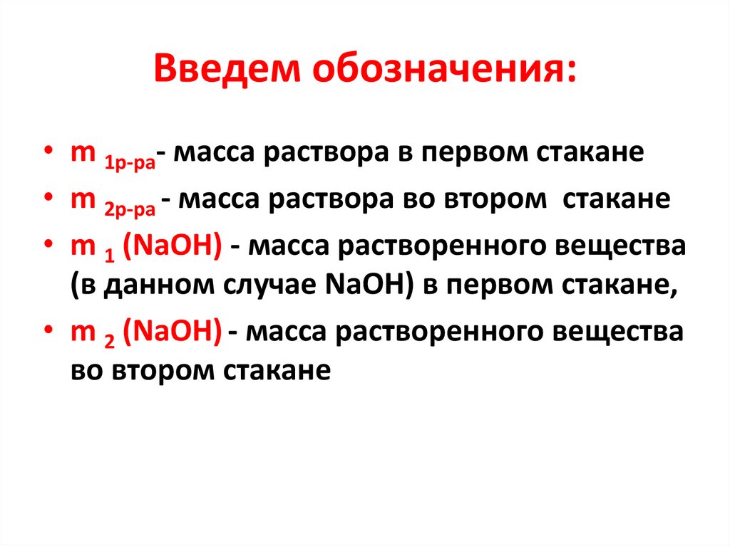 Введем обозначения:• m 1р-ра- масса раствора в первом стакане