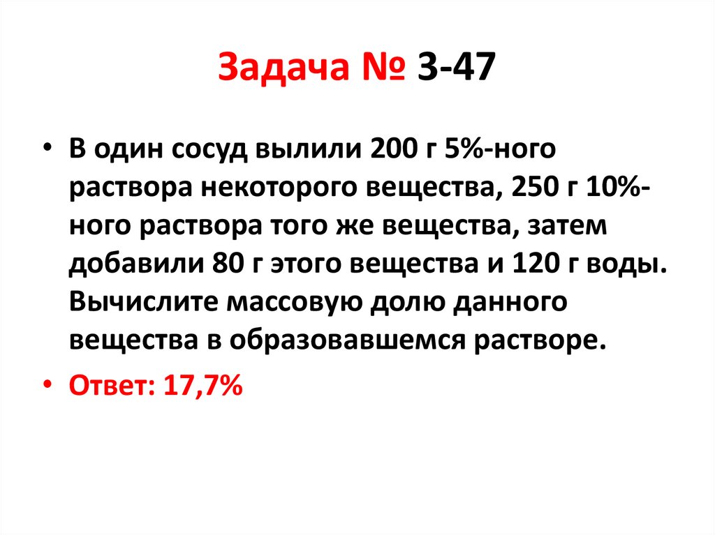 Задача № 3-47• В один сосуд вылили 200 г 5%-ного
