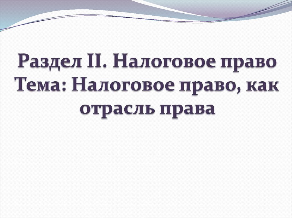 Налоговое право, как отрасль права