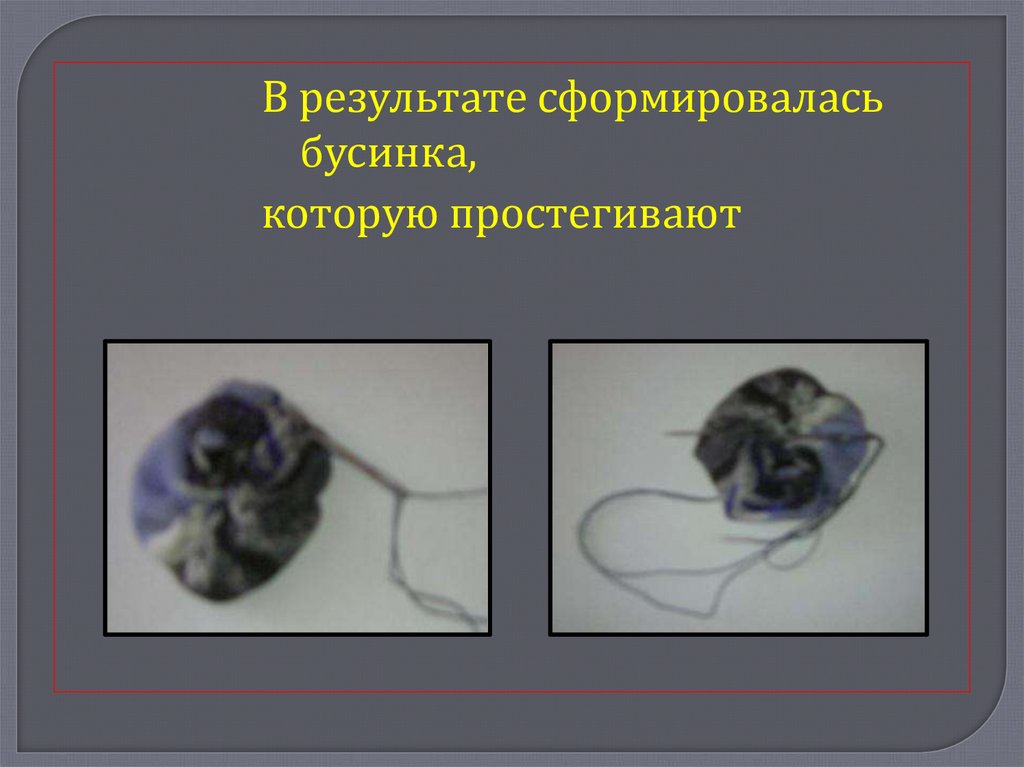 Слегка стянуть нитку. Получился «мешочек»,