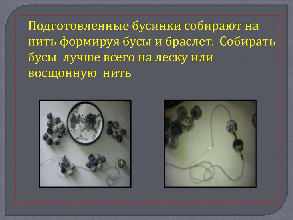 Подготовленныебусинки собирают на