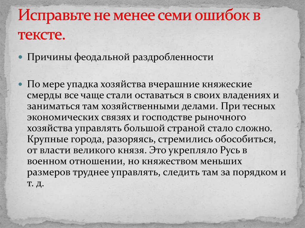 Причины феодальной раздробленностиПо мере упадка хозяйства вчерашние княжеские