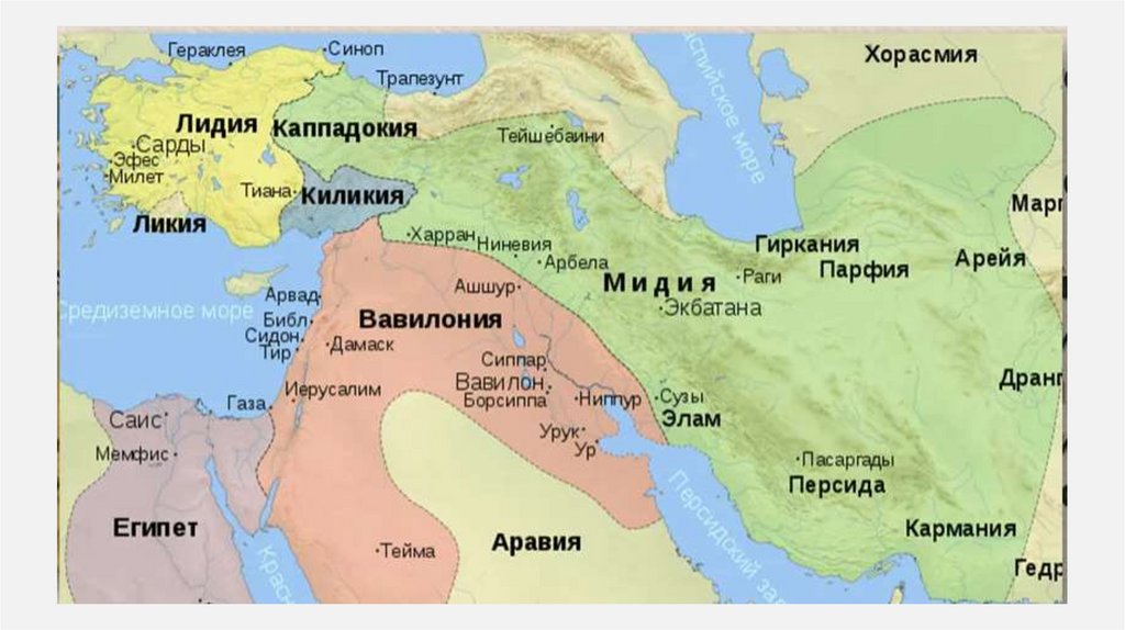 6. Обозначьте границы царств, на которые распалась Ассирийская держава.