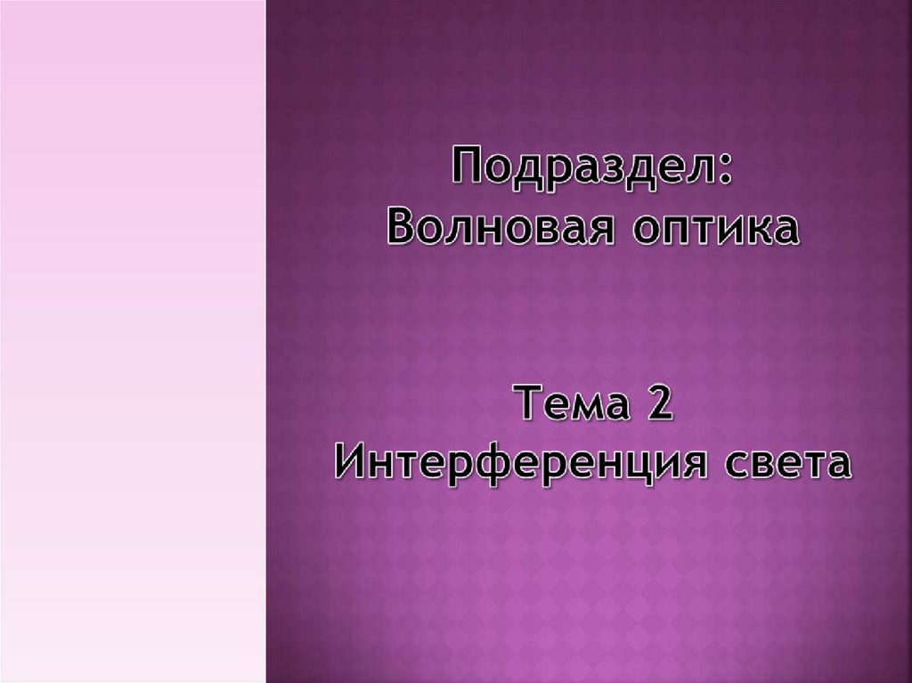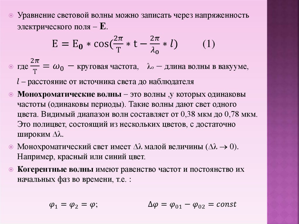 §1 Понятие об интерференцииМонохроматичность и когерентность волн. Оптическая