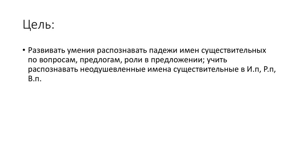 распознавать неодушевленные имена существительные в И.п, Р.п,