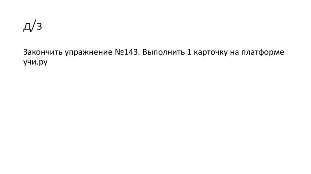 д/зЗакончить упражнение №143. Выполнить 1 карточку на платформе