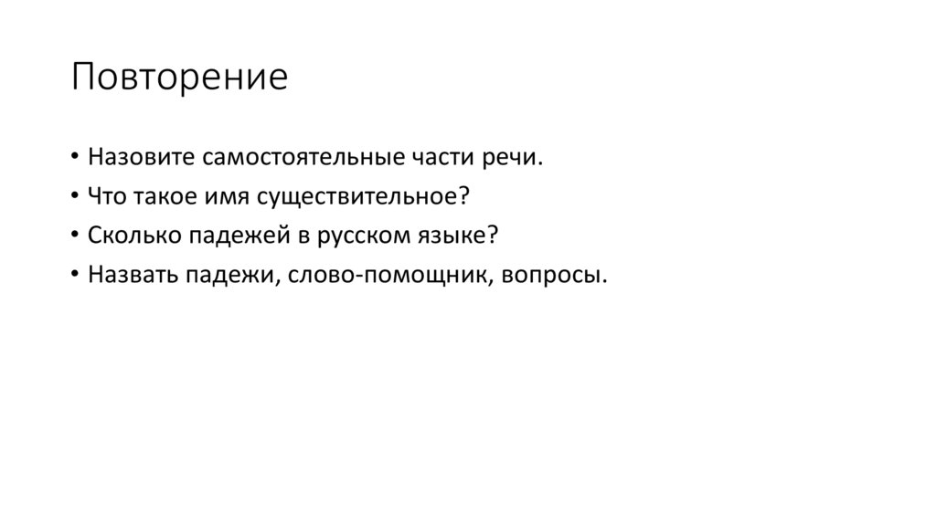 Упражнение в распознавании неодушевленных имен существительные в И.п, Р.п, В.п