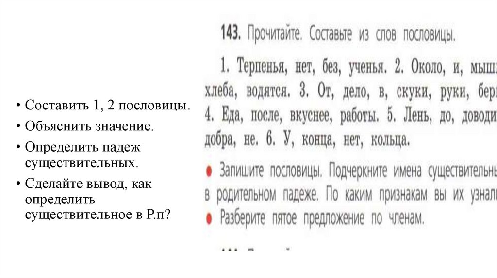 • Составить 1, 2 пословицы.• Объяснить значение.