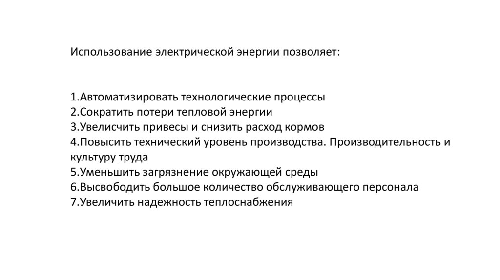 Использование электрической энергии позволяет:1.Автоматизировать технологические процессы