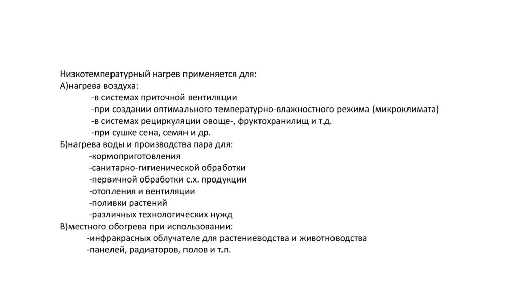 Низкотемпературный нагрев применяется для:А)нагрева воздуха: