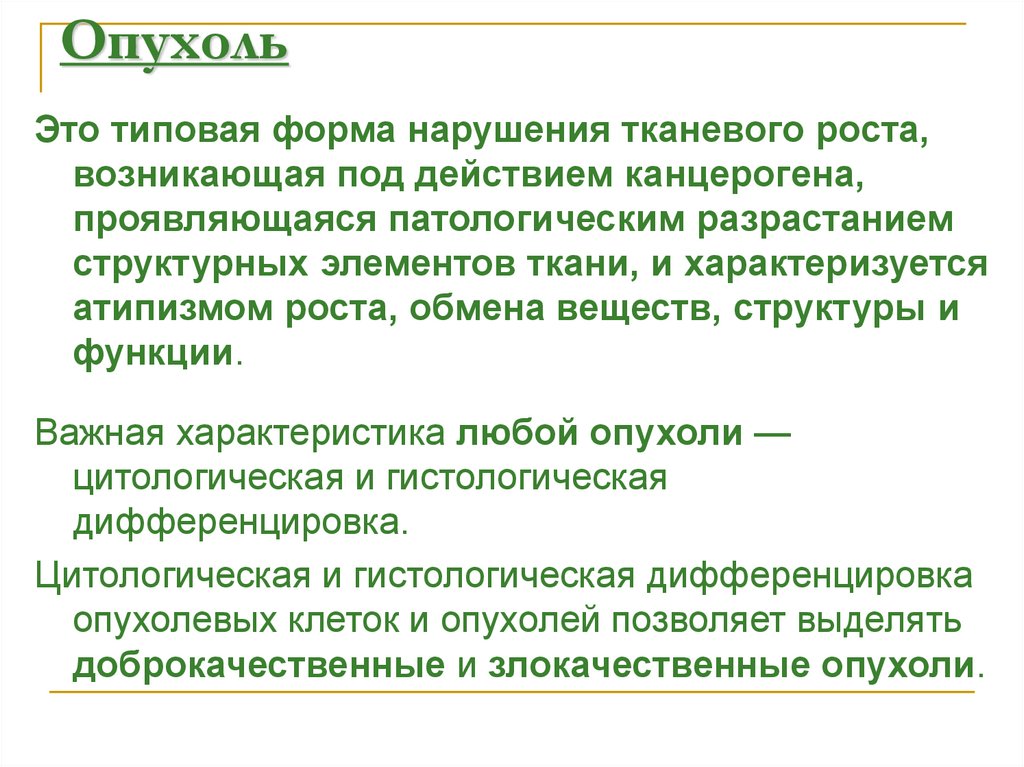 ОпухольЭто типовая форма нарушения тканевого роста,
